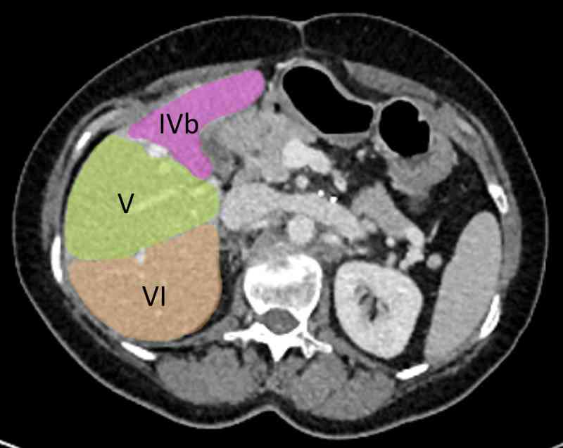 Liver segments are the caudate lobe (segment I) and each region of the liver when it is divided by the portal and hepatic veins. Segments below the portal vein from left to right are III, IVb (remember it is inferior using b for base), V and VI. Segments above the portal vein are II, IVa VIII and VII. When working in this order is is not immediately apparent the order that the segments take e.g. VII seems to be after VIII. Instead count starting with the caudate lobe, move across to segment II (superior, most leftward), move down to III, across right to IV, V, and VI, then straight up to VII and across left to VIII. Trace this out in your mind and on screen and it makes sense.